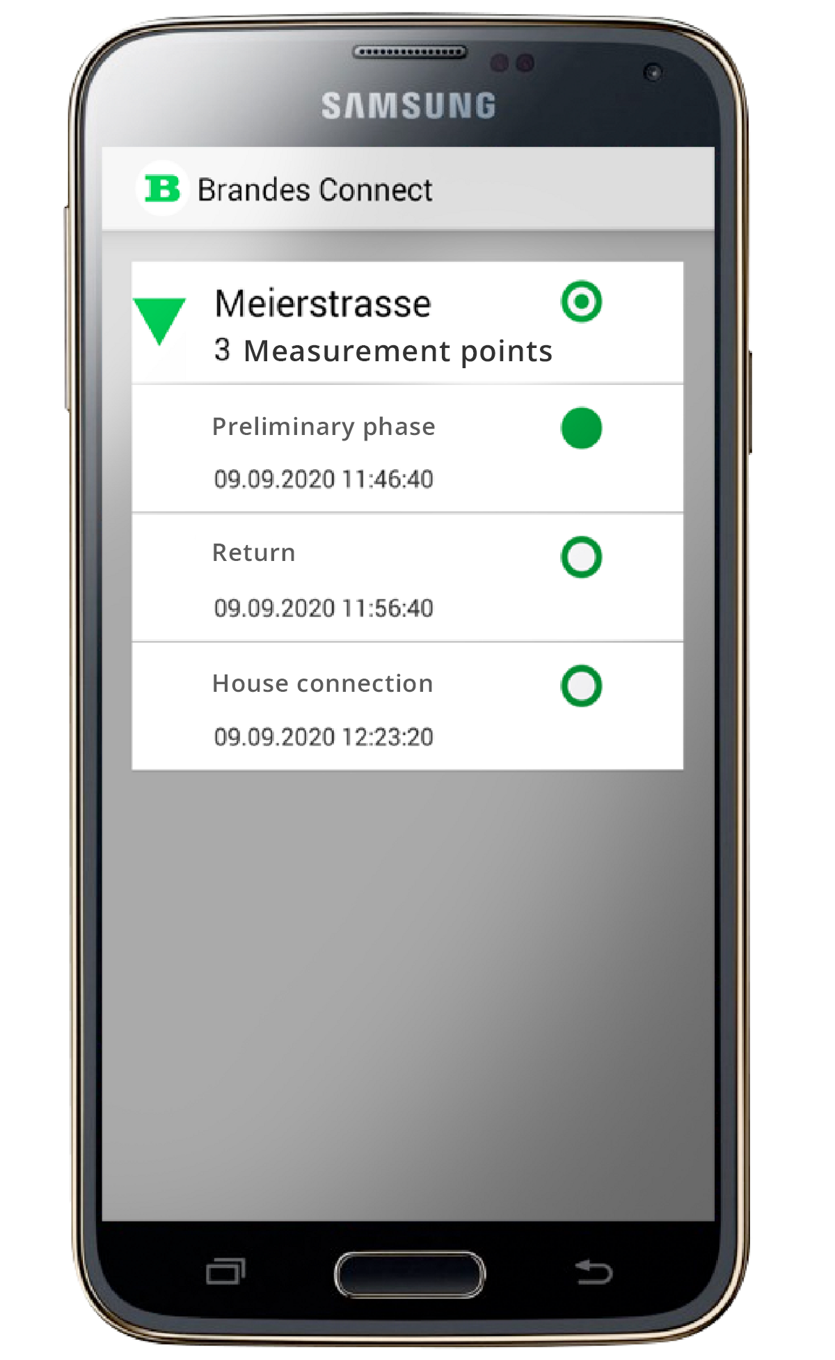 - All measurement logs can be transmitted wirelessly via Bluetooth interface, e.g. to a smartphone with the Brandes Connect app, and forwarded by email including additional text information.